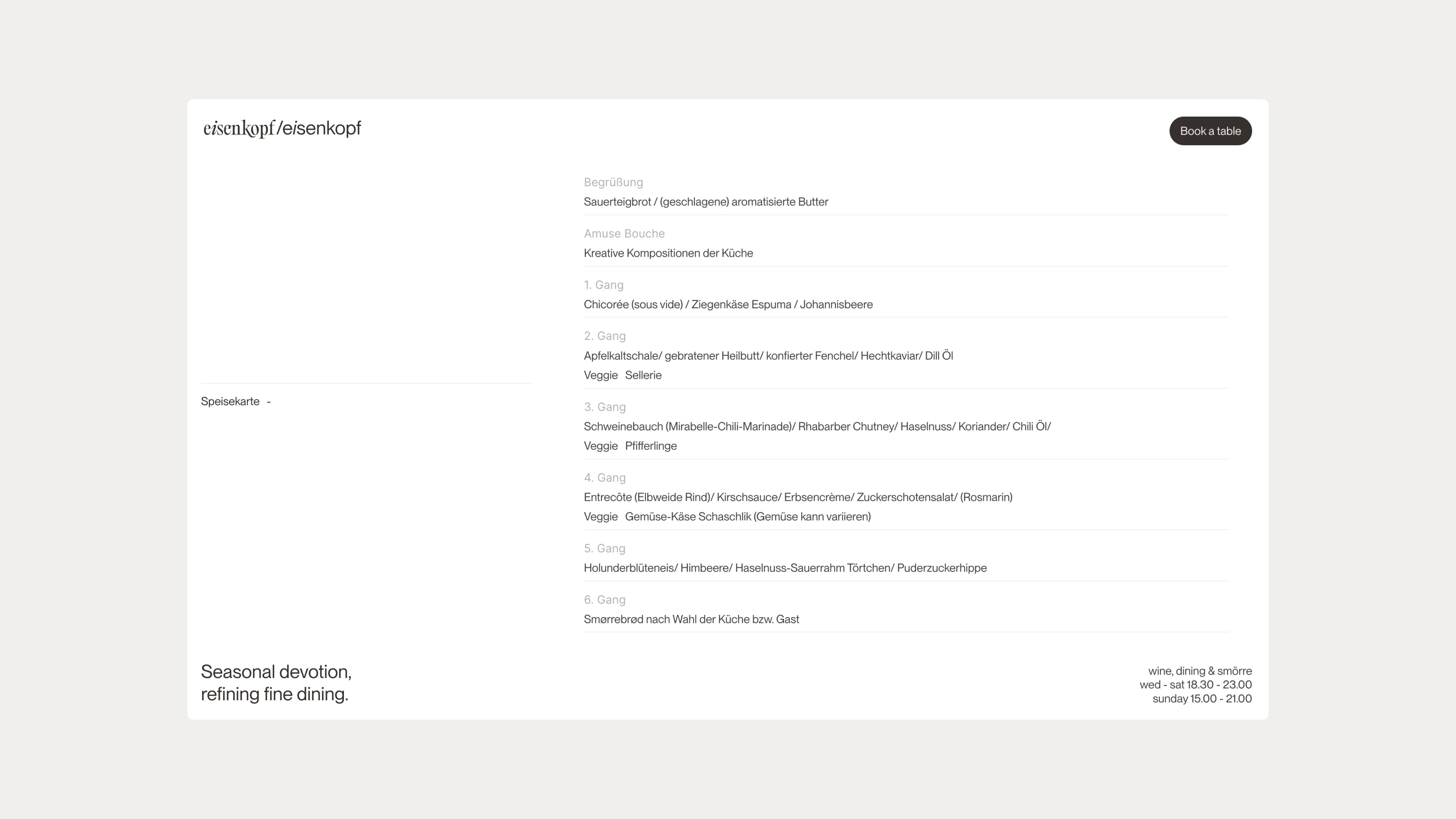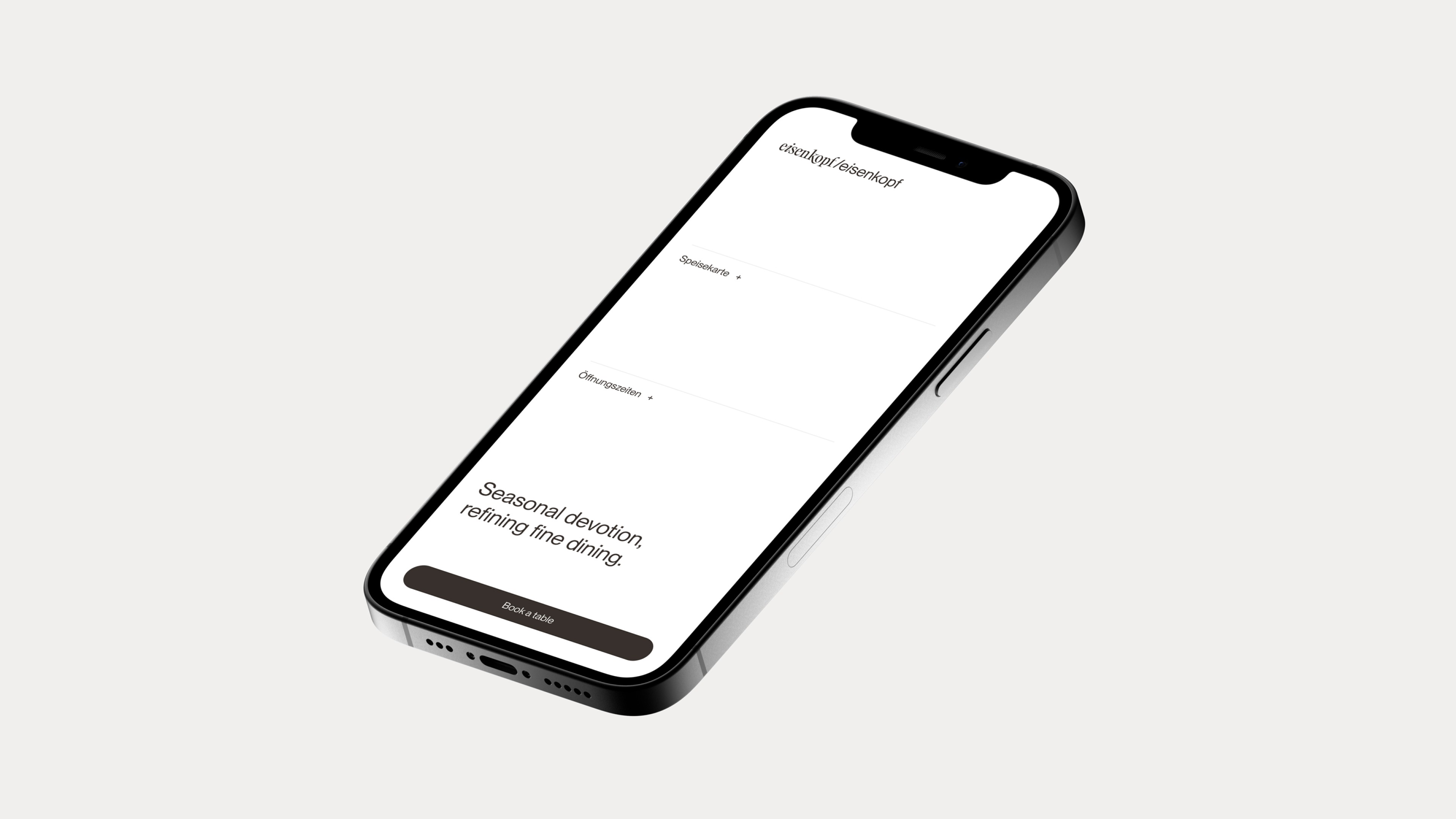For Leipzig's culinary gem, Eisenkopf, we sculpted a visual identity steeped in wabi-sabi philosophy—finding beauty in imperfection. Our branding strategy, from the name to the website, embodies elegance with an organic touch. The logo reflects this ethos, combining classic type with a modern twist, mirroring Eisenkopf's fine dining experience that's artfully unrefined.